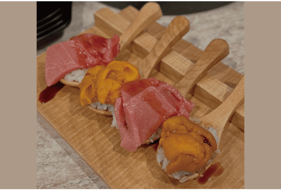 名物だった「一口スプーン寿司」もあるが、大きな生け簀があるので、生け簀を活用したメニューにシフトチェンジしたようだ。
