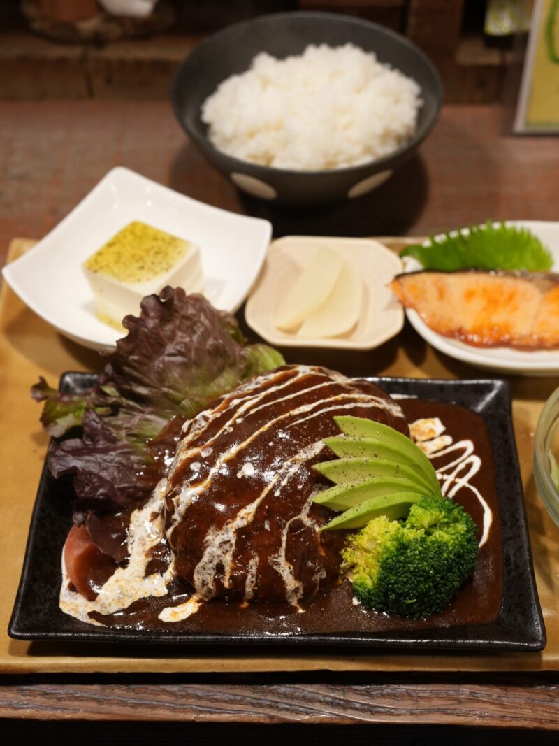 金曜日と土曜日は夜営業もしている【ハチミツボタン】。仕事帰りに晩ごはん。昨日も夜に【ステーキロデオ】で肉を食べたけど今夜も肉モード。実はロデオでステーキとハンバーグのコンビがあるかなぁと思ってたんだけどステーキのみだったのよね。知らんかった。