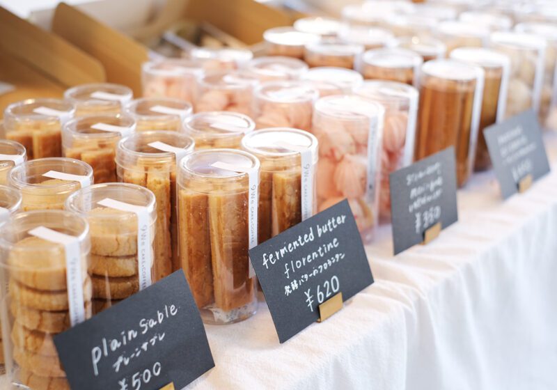 静かな住宅街に佇む現在の店舗は、元事務所を改装した落ち着きのある空間。アンティーク家具や古いオブジェが並び、時を重ねた温もりが漂います。カウンターには「vingtsix」の焼菓子、ショーケースにはロールケーキや季節のタルトが並び、見るだけでも楽しい雰囲気です。