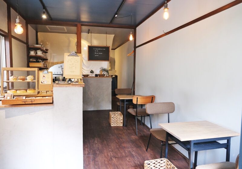 福岡・西新の住宅街に佇む「café Connu(カフェ コニュ)」は、地下鉄西新駅から徒歩約10分の場所にある隠れ家的カフェ。2021年にオープンし、フランス語で「知られている」という意味を持つ店名には「多くの人に知ってもらいたい」という思いが込められています。元住居を改装した温かみのある店内は、店主自らDIYしたというこだわりの空間。カウンターにはテイクアウトも可能な焼菓子やドーナツが並びます。