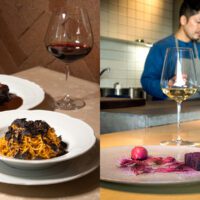 2つ目のオードブルをいただいた後は、贅沢な魚料理「活け締め天然真アラのクルートパルメザン焼き」が登場しました。鐘崎漁港で水揚げされた真アラは皮目を焼き、クルートパルメザン※をのせてオーブンに入れ、表面は香ばしく、身は潤みを帯びた仕上がりに。鮮度弾ける天草産の天然車海老と玄界灘産のヤリイカ、白丸ナスやズッキーニといった、生産者の顔が見える無農薬・有機栽培野菜も名脇役。甲殻類や魚介を煮出したブイヤベースをコンソメ状に澄ましたスープは風味豊かで、微かなアニスの香りが南仏料理らしい余韻を残します。