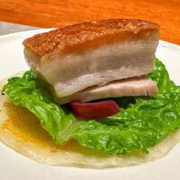 こちらは【メイチ炙り】。メイチダイという夏が旬の魚で、炭に直接皮部分を当てるという、少し変わった炙り方。香ばしさがプラスされているのはもちろん、モッチリとした食感も独特です。