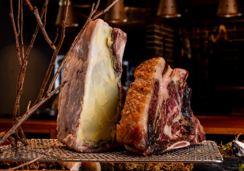 一角には肉の熟成庫があり、壁には来店した国内外のシェフや生産者、ゲストのサインがびっしりと。プライベートレストランへ招かれたかのような親密な空間に、胸が高鳴るのは言うまでもありません。