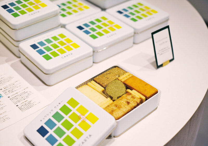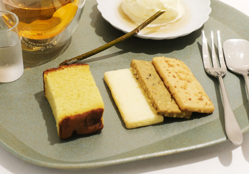 ほかにも自社栽培のザボンを使った長崎県「文旦堂」の「ざぼんカステラ」、お茶や柑橘、胡椒や醤油など九州産の素材を使った「CARTA」オリジナルの「キュウシュウクッキー」3種も楽しむことができます。お皿は佐賀県嬉野市で作られる肥前吉田焼の「224porcelain」の「Voronoi Plate」と、九州づくしの一皿です。