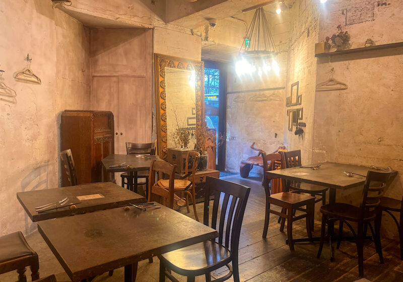 街路樹が色づきはじめた、けやき通り沿いにある「洋食ワイン Vin」。扉を開けるとアンティーク調の家具や照明が空間を飾り、ゆったりとした時間が流れるよう。大人が肩肘張らずに食事を楽しめる居心地の良さが魅力です。