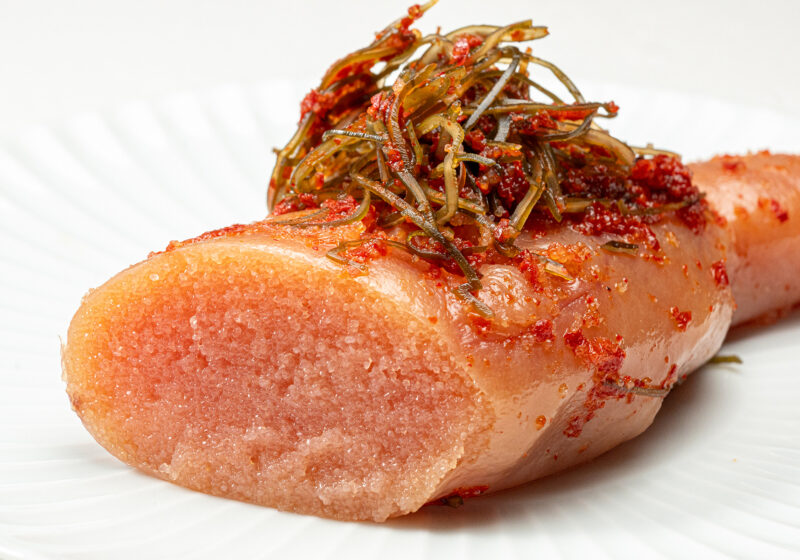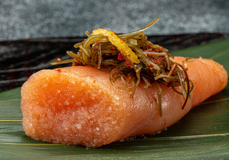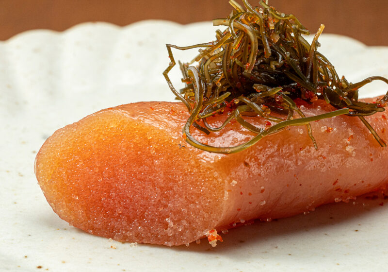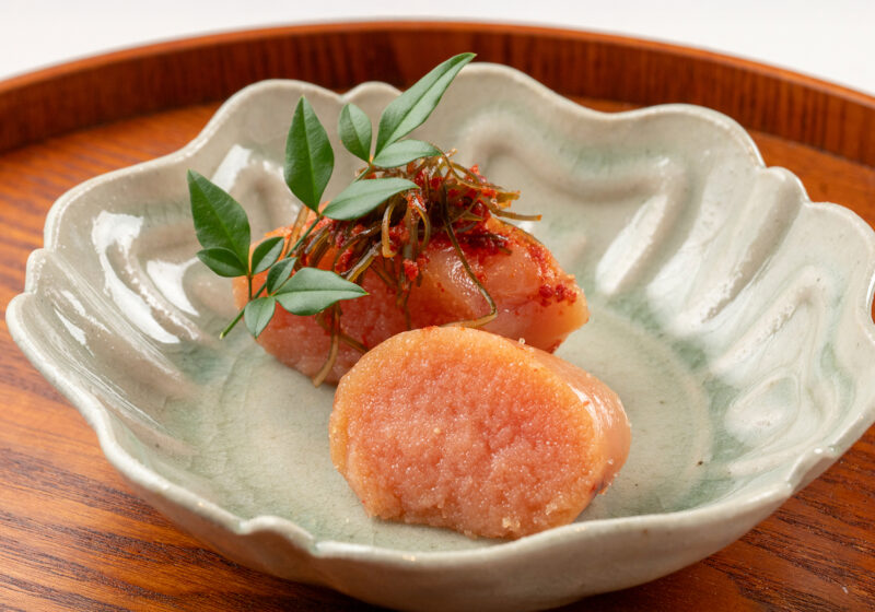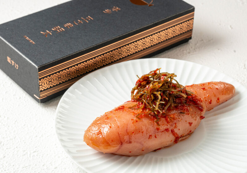 続いてご紹介するのは、福岡随一の美食エリア・西中洲に店を構える日本料理店「日本料理 ながおか」の逸品。オランダのホテルオークラや博多の割烹など、様々な店で研鑽した店主・長岡周吾さんが丹精込めてつくる「自家製辛子明太子」です。