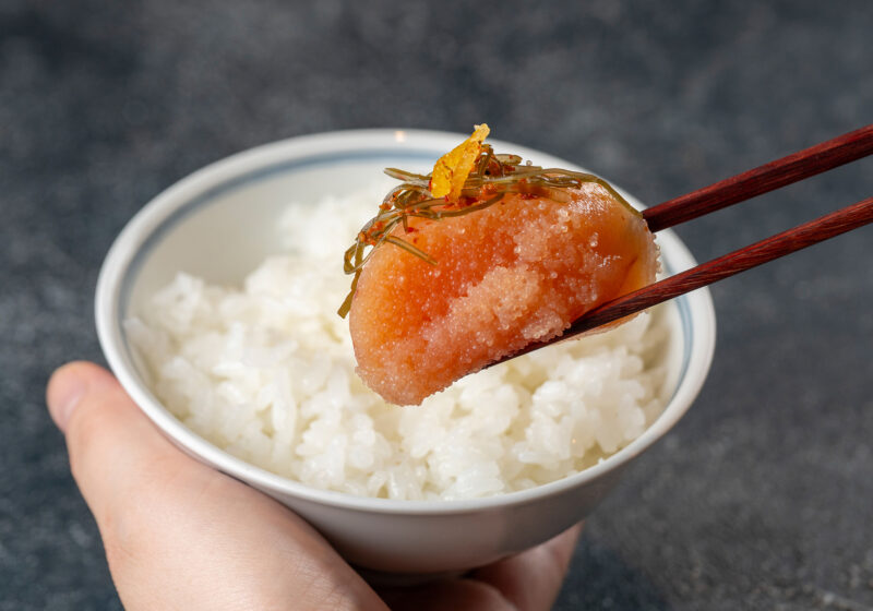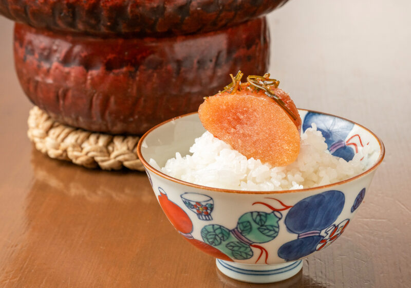 「日本料理 ながおか」ではコースを締めくくる土鍋ご飯のお供の一つにこの明太子が登場します。お店で使用している三潴郡大木町の合鴨農法による無農薬米に合わせてこの明太子をつくったというだけあり、ご飯との相性は言うまでもなく抜群。2025年9月にオープンした姉妹店「アテヤ 清と鶴松」では、お酒のアテとして楽しむこともできますよ。