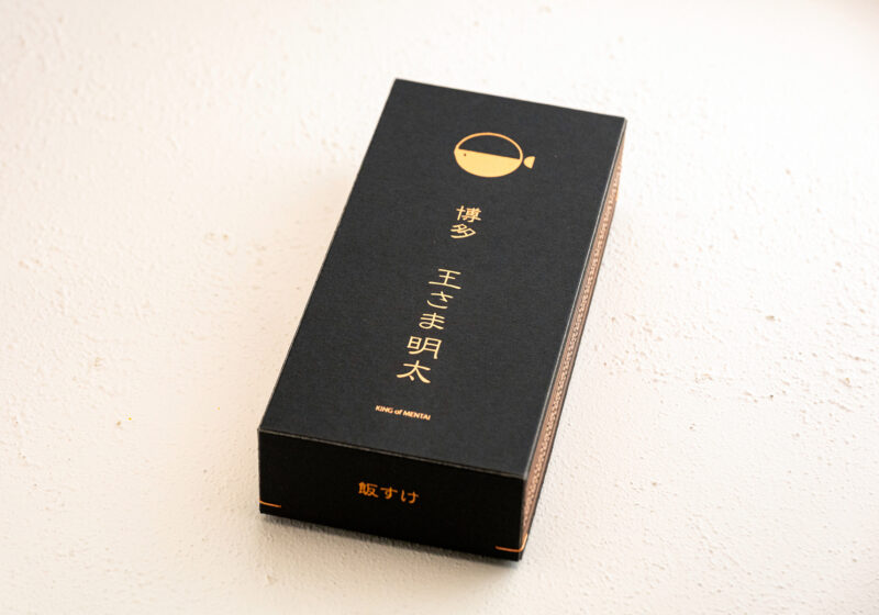 そして、トリを飾るのは「福岡で魚定食を食べるならココ!」と多くの食通が太鼓判を押す人気店「ごはんや 飯すけ」で購入できる「飯すけ謹製 博多 王さま明太」。「飯すけ」といえば、2025年6月に開業した「おすしや飯すけ」も記憶に新しいですよね。この寿司店の横にある「飯すけ工房」で、明太子や魚の干物をはじめとする加工品を製造しています。