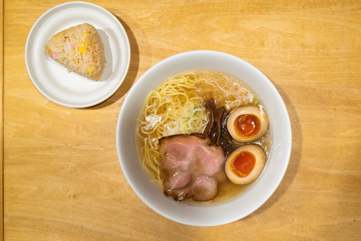 中華そば900円、支那そば950円、半熟煮玉子トッピング100円、チャーシュートッピング200円、チャーハンおにぎり200円、豚足600円、ニラもやし550円、生ビール600円、焼酎450円、ハイボール550円
