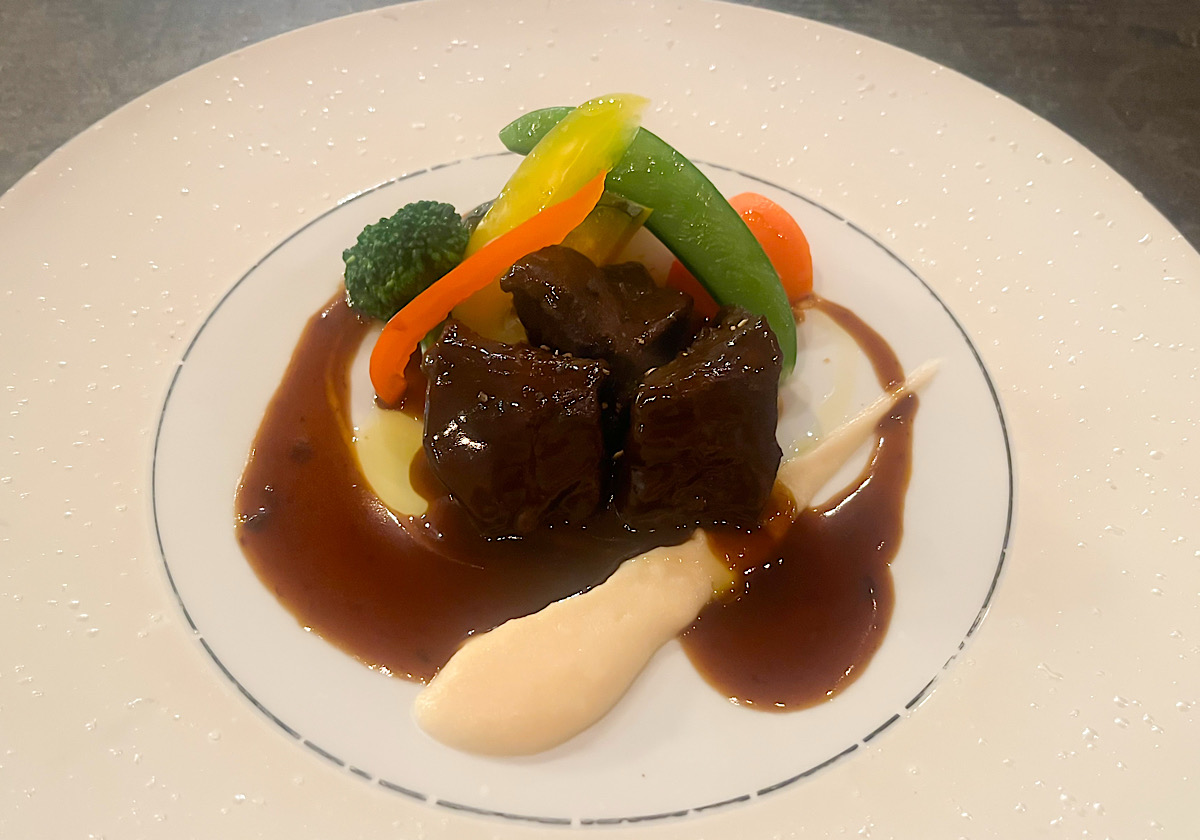 ランチコース3,080円(2名より)、海老&キノコのアヒージョ1,078円、鶏レバーのムースパテ968円、オードブル5種盛り2名分1,628円、牛ホホ肉の赤ワイン煮込み2,420円、フランス産カモ胸肉のロースト1,848円、カナダ産活オマール海老ロースト5,940円、ディナーコース3,500円〜(2名より)