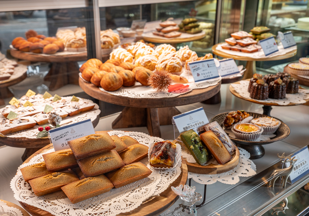 アマンディーヌ330円〜、フィナンシェ240円〜、カヌレ320円〜、注文ごとにクリームを詰める「やみつきコルネ」350円、チーズケーキ380円、ビスキュイ・ド・サヴォワ S 960円・L 2,480円